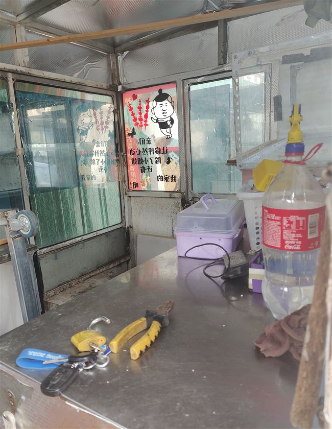 出售四轮电动车一辆,长3.2米,宽1.8米。三面都有门窗,窗户打开是30公分的台面。里面有1.85×0.55米,不锈钢工作台上下两层。两面开有门,三个外开窗,可以摆放东西。配上电池,可以开动。车带两个遮阳棚。安上电池可以行驶。可以做小吃车,可以做售卖车。