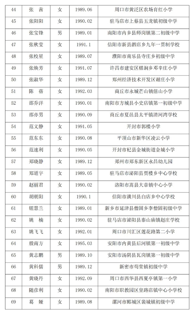 附件:1.2024年河南省推荐上报教育部乡村优秀青年教师培养支持计划人员公示名单
