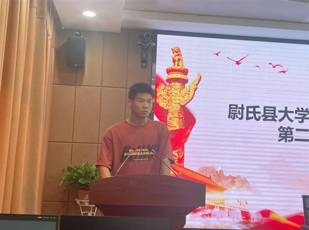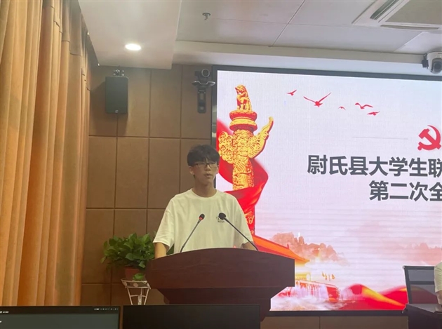 第二届联盟主席刘畅发言,他回顾了自己的中学以及大学时光,坚定的要带领联盟成员们积极投入“建设新尉氏”的征程中,用报国之心、学习之心、创新之心、荣誉之心投入联盟返家乡社会实践中,让青春在建功新时代中绽放光辉。