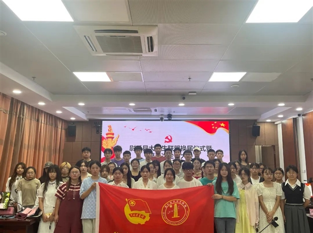第一届主席团代表黄宇航郑重地将大学生联盟旗帜授予第二届联盟主席刘畅,授旗仪式顺利完成。