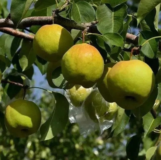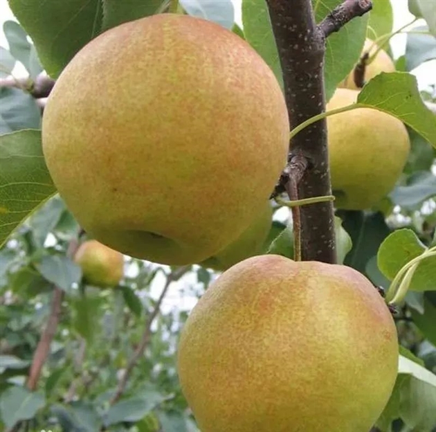 尉氏玉露香梨果形呈近球形,果皮绿色,阳面有红晕,占比1/4,果重310~195g,果面光洁细腻具蜡质,果点小而细密,果皮薄,果核小,果肉白色,细嫩酥脆,无渣,汁多味甜。