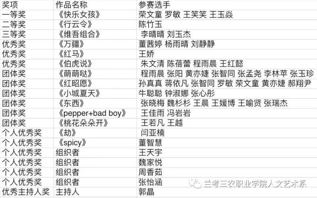 比赛获奖名单: