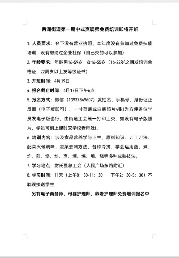 1、人员要求:名下没有营业执照,本年度没有参加过免费技能培训,没有缴纳过企业社保(自己交的可以参加)2、年龄要求:年龄男16-59岁女16-55岁(16-22岁之间发培训合格证,22周岁以上发等级证书
