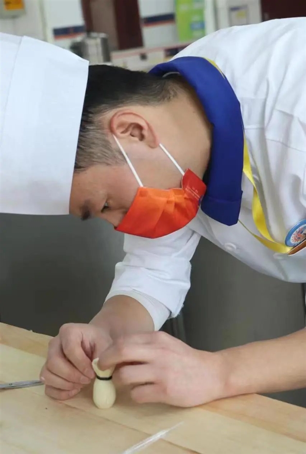 孙玉鹏,男,1983年出生,2001年毕业于开封市技工学校中式烹饪与酒店管理专业,先后在开封宾馆、东京大饭店、康鑫源宾馆、三亚阳光大酒店、开元名都大酒店从事中式面点工作22年,2021年入职开封技师学