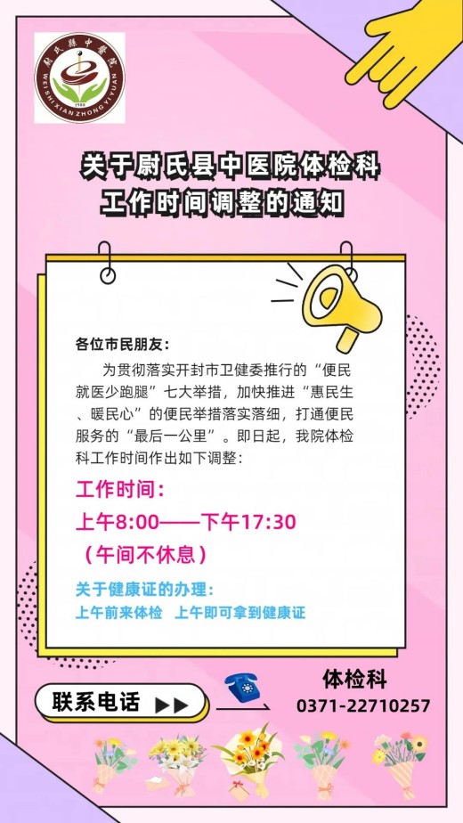 根据尉氏县2022年乡镇卫生院医护人员公开招聘考试公告的要求,现将进入体检人员名单及注意事项通知如下: 一、参加体检的考生请于2023年8月3 日(周四)上午6:30前持本人面试准考证、有效身份证到尉