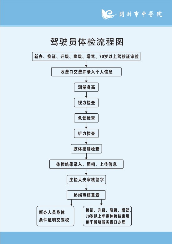 为了方便广大驾驶员进行体检,即日起,开封市中医院体检中心开通驾驶员体检服务,请有需要的驾驶员携带本人身份证到中心进行体检。体检流程体检对象1、新报考驾照人员2、驾驶证升级、降级及增驾人员 3、驾驶证期