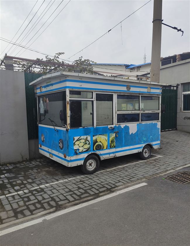 出售四轮电动车一辆,长3.2米,宽1.8米。三面都有门窗,窗户打开是30公分的台面。里面有1.85×0.55米,不锈钢工作台上下两层。两面开有门,三个外开窗,可以摆放东西。配上电池,可以开动。车带两个遮阳棚。安上电池可以行驶。可以做小吃车,可以做售卖车。
