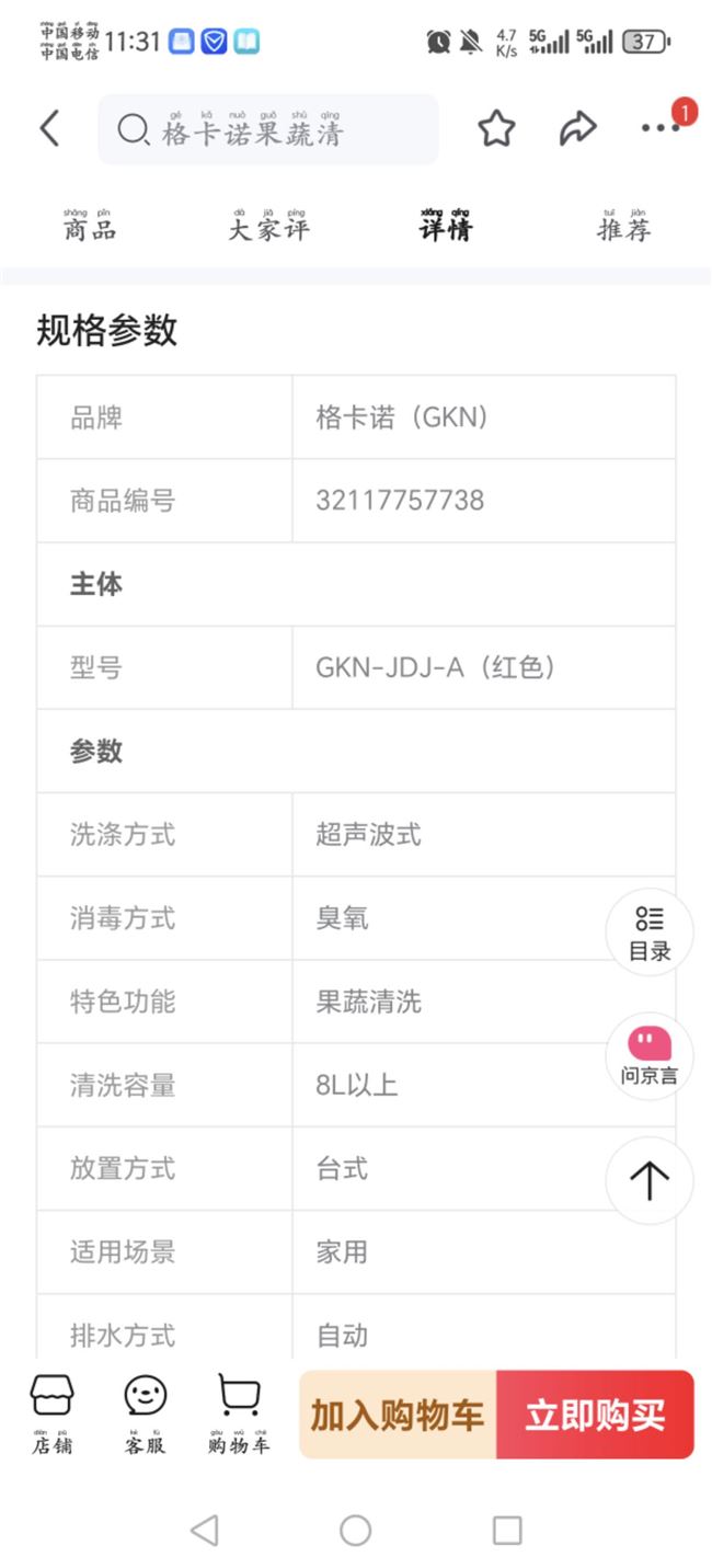 全新未使用的格卡诺果蔬清洗机!