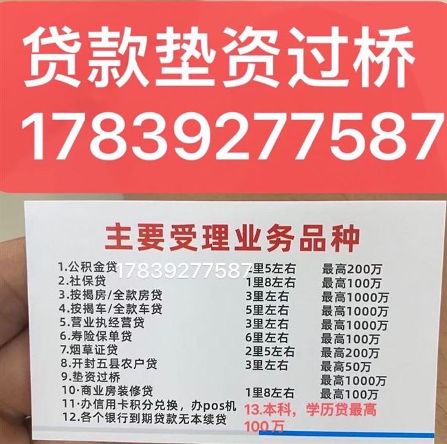 急用钱联系17839277587垫资过桥贷款
