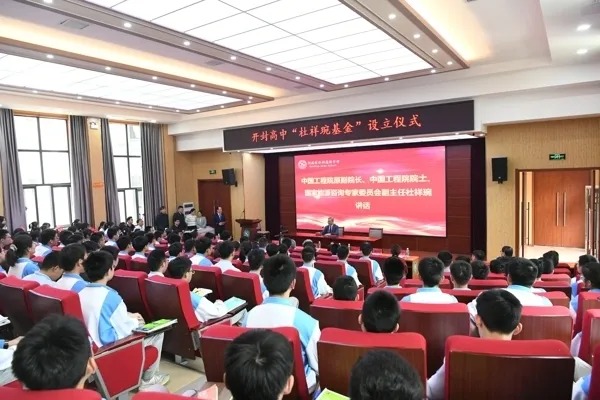 杜祥琬院士在致辞中回忆了在开封高中求学的点点滴滴,感念教师的辛勤付出、无私奉献与对学生无限的关爱,明确指出是家乡的文化、开高的教育为自己求学研究奠定了坚实的基础。杜院士把对母校深深的眷恋之情、对后辈的殷切期望,以教育基金的形式进行传达,并希望更多的校友加入到回报母校、反哺家乡的行动中来,作出自己应有的贡献。他鼓励同学们要珍惜当下良好的学习环境,志存高远,学知识、学做人,在高中阶段打下坚实基础,为将来的成功积淀,以实际行动回报学校、社会和国家的培育。