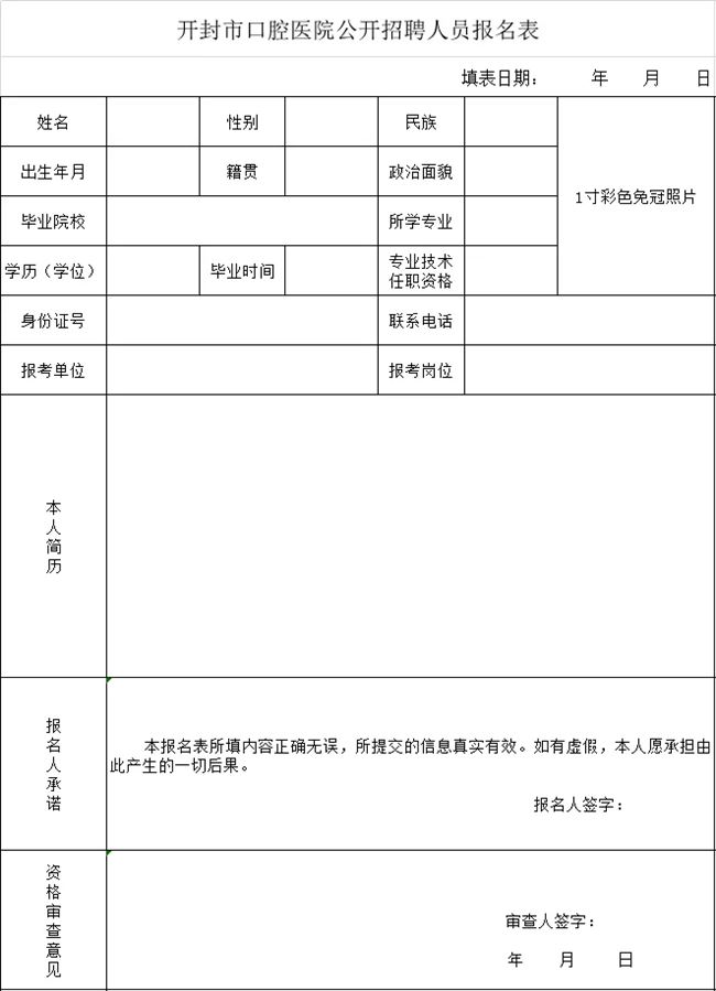 (附件可以自行打印,也可以在开封市口腔医院人事科领取)