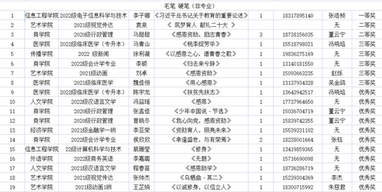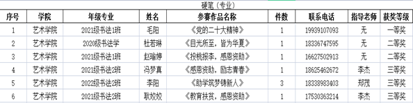 (3)硬笔书法类:一等奖 2人, 二等奖4人, 三等奖8人,优秀奖11人。