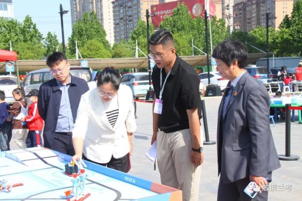 兰考县科协牛书记在教体局总督学常聪明老师和兰考县中心校兰阳街道专干王丽老师的陪同下,参观指导本次科技节。