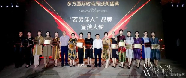 在东方国际时尚周颁奖盛典上,郑州市工商业联合会副会长、河南省服装协会常务副会长、河南若男佳人服饰有限公司褚立勋,朱仙镇文化旅游股份有限公司常务副总裁沈建荣,赛美国际时尚美学职业教育创始人刘赛,启封故园总经理郭广达为“若男佳人”品牌宣传大使颁发奖牌。