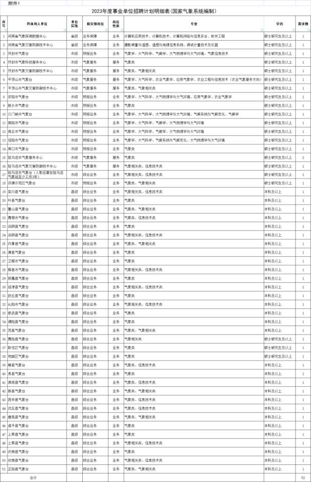 附件1.南省气象局2023年度事业单位招聘计划明细表.xls