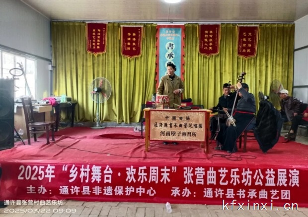 3月22日,周六,春风和煦,通许县竖岗镇张营村曲艺乐坊,继续举办2025年“乡村舞台 欢乐周末”曲艺公益展演,这也是开春一来第7—8场展演。当天,180余名观众欣赏了曲艺演出。参演演员有陈