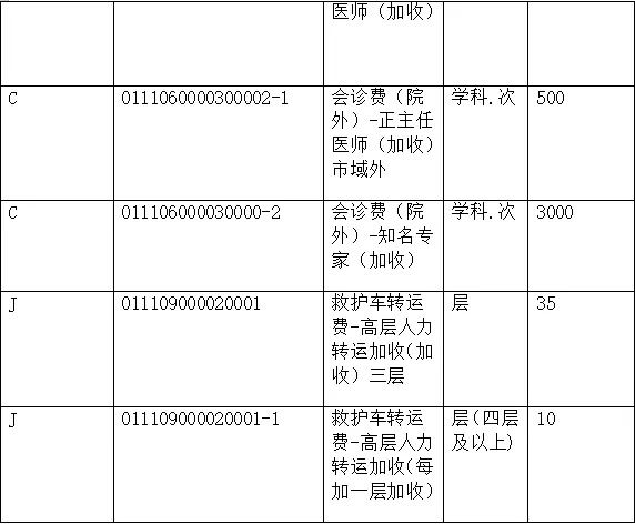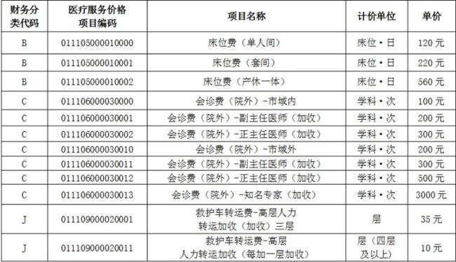 51号)文件要求:“床位费(单人间)”及“会诊费(院外)、救护车