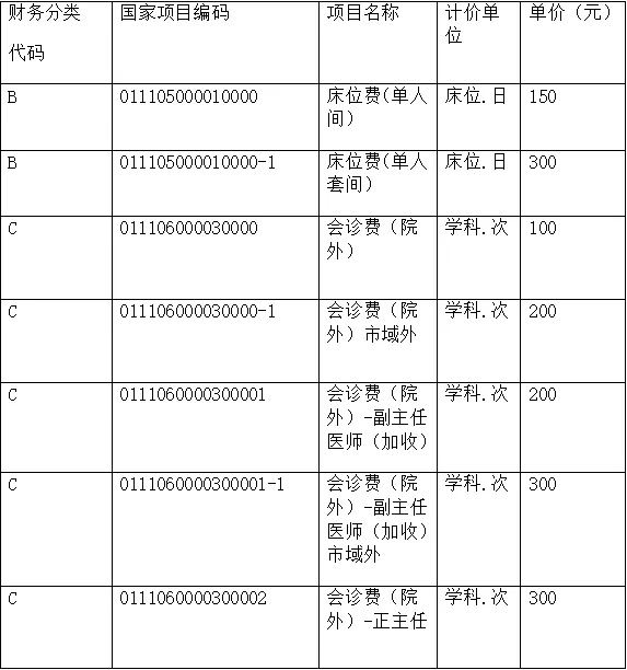46号)文件要求:“床位费(单人间)”及“会诊费(院外)、救