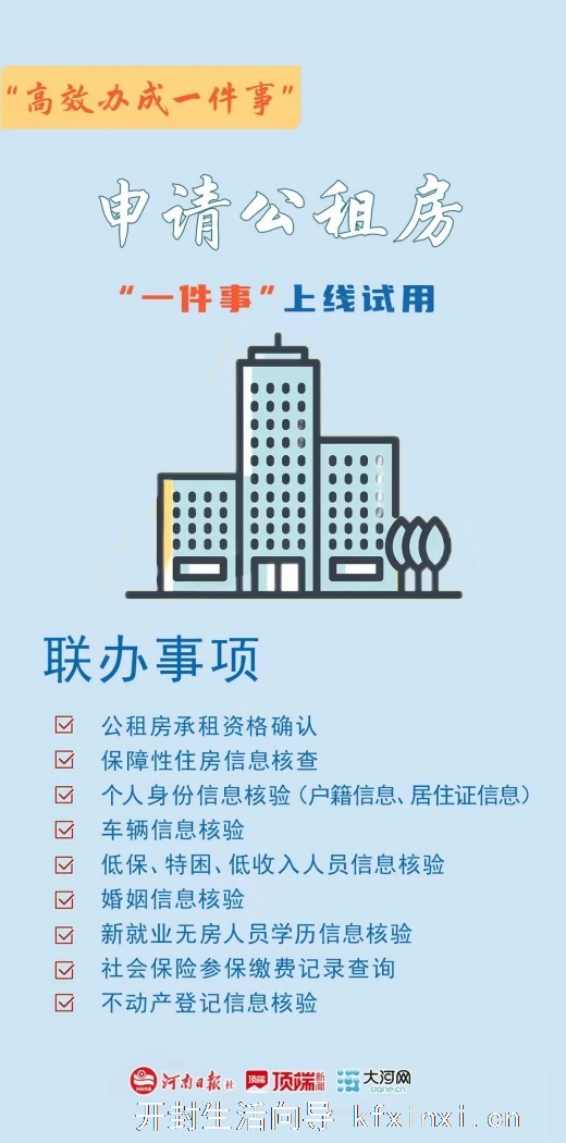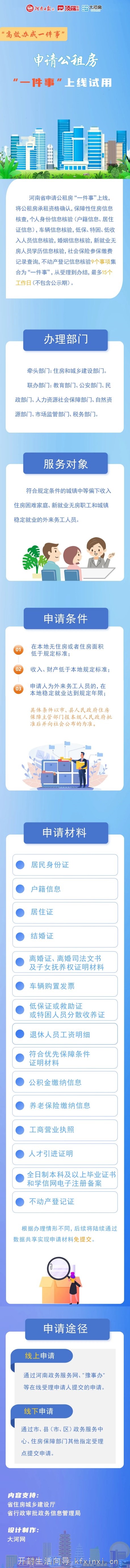 记者从省住房城乡建设厅、省行政审批政务信息管理局获悉,河南省申请公租房“一件事”于2月18日在全省范围内上线试运行,群众通过河南政务服务网或者“豫事办”App,轻松几步操作,即可在线申请公租房,不再需