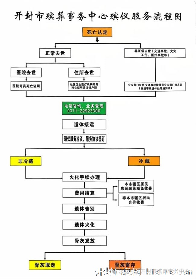 开封市殡葬事务中心殡仪服务流程图郑重告知1、本中心从未向社会上派驻业务工作人员,未与任何单位和个人签订殡葬服务合作协议。2、本中心禁止所有工作人员以任何形式向家属索要物品或现金,办理业务过程中不接受任