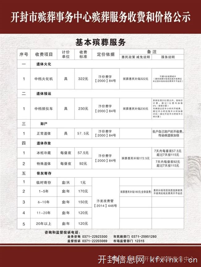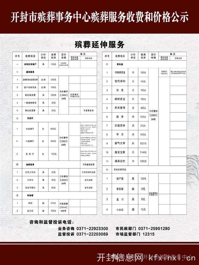 基本殡葬服务项目及价格公示殡葬延伸服务项目及价格公示郑重告知1、本中心从未向社会上派驻业务工作人员,未与任何单位和个人签订殡葬服务合作协议。2、本中心禁止所有工作人员以任何形式向家属索要物品或现金,办