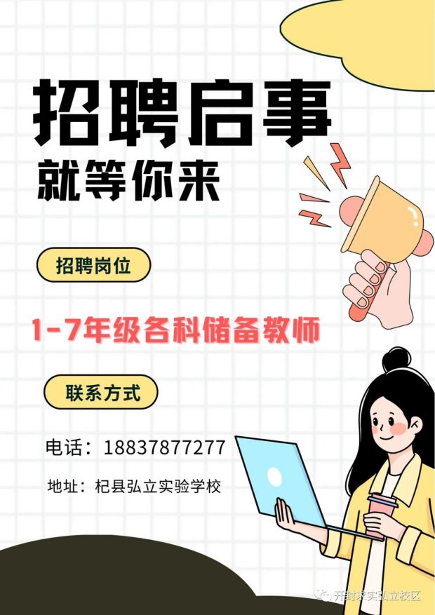 杞县弘立实验学校招聘招聘1-7年级储备教师,有意者可电话咨询!