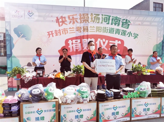 6月13日,“公益体彩 快乐操场”捐赠活动走进兰考县青莲小学,向该校捐赠篮球、足球、羽毛球、跳绳、象棋、飞盘、乒乓球桌、拔河绳等多种体育用品,其总价值达2万余元。此外,还带来两节由河南省体育中学专业老