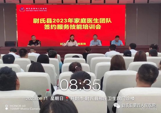 为进一步提高家庭医生团队服务能力,促进家庭医生签约服务提质增效,6月11日,尉氏县2023年家庭医生团队签约服务技能培训班在县第四人民人民医院培训基地举办,尉氏县卫健委副主任安俊丽、基层科霍增光、尉氏