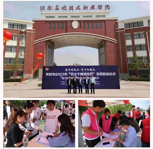 5月12日,团市委、市工信局、市人社局联合在河南应用技术职业学院举办开封市2023年“百企千岗进校园”活动暨河南应用技术职业学院医药制药类专场招聘会。在企业和毕业生之间精准搭建双选平台,满足企业引才需