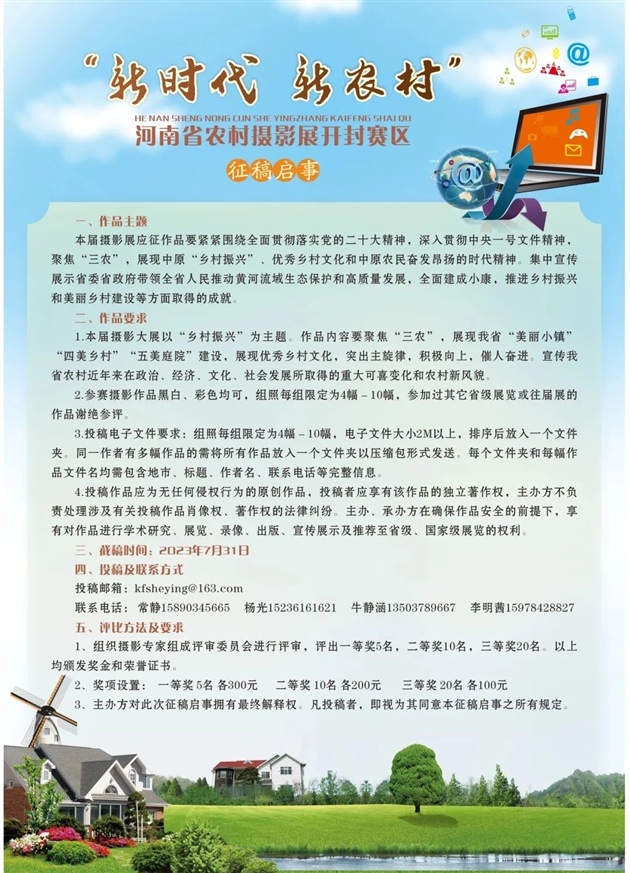 作品主题本届摄影展应征作品要紧紧围绕全面贯彻落实党的二十大精神,深入贯彻中央一号文件精神,聚焦“三农”,展现中原“乡村振兴”、优秀乡村文化和中原农民奋发昂扬的时代精神。集中宣传展示省委省政府带领全省人