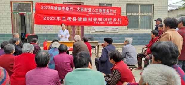 5月11日上午,县中心医院义诊服务队来到三义寨乡杨圪垱村开展了健康教育知识讲座及义诊活动。活动开始,县中心医院神经内科医生孙林平为现场群众做健康科普宣讲,现场讲解脑卒中早期识别和防治知识,呼吁人们重视